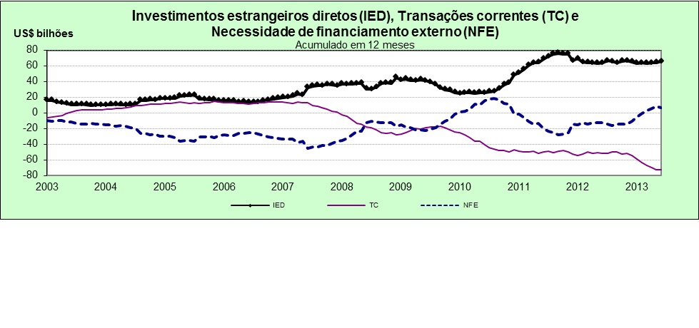 Quanto às Rendas o país gastou exatos US$ 20,0 bilhões para pagar juros (US$ 5,9 bilhões) e para remeter lucros e dividendos (14,1 bilhões) nos primeiros seis meses de 2013. Um componente muito “pesado” advindo da demanda dos investimentos estrangeiros diretos ou em portfólio para ajudar as matrizes de suas empresas localizadas nos países ricos em crise.