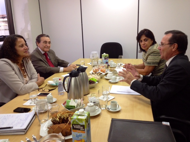 Na terceira reunião do dia, o PCdoB representado por seu presidente e sua vice-presidente, além do secretário de relações internacionais e membros da comissão internacional, receberam a visita do embaixador do Estado da Palestina, Sr. Ibrahim Alzeben. Na verdade o embaixador emocionou os brasileiros presentes ao evento com a entrega de um presente riquíssimo em arte de machetaria, em retribuição ao trabalho que o Partido vem travando pela libertação do povo palestino, em solidariedade à luta pela concretização de seu Estado nacional.