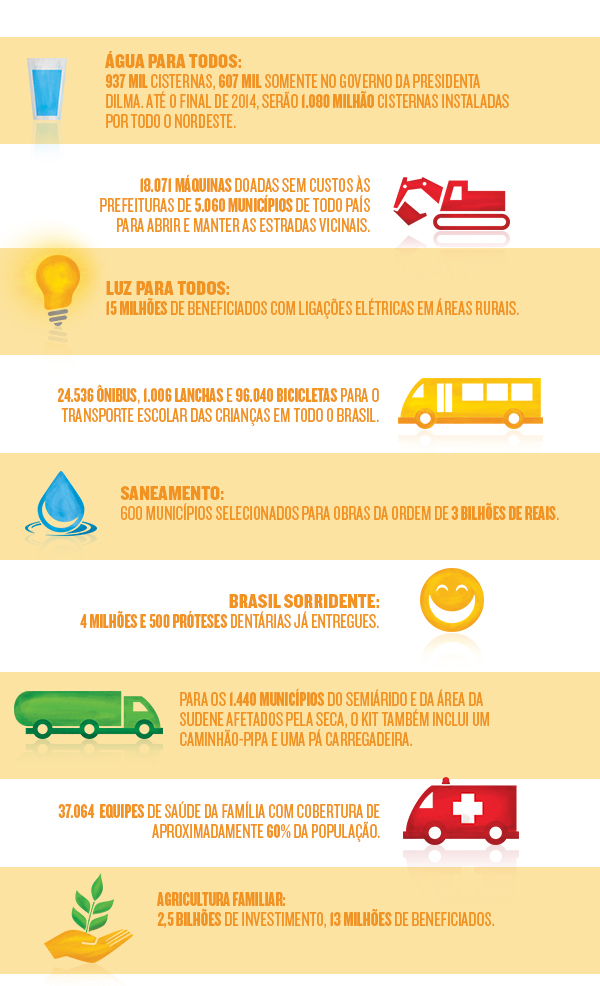 Mas Lula e Dilma fizeram ainda mais. Confira no quadro abaixo algumas dessas ações que mudaram para melhor a vida da população das cidades menores do Brasil: