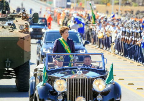 Como é tradição, Dilma chegou à Esplanada em carro aberto, no Rolls-Royce da Presidência da República. Após autorização da presidenta, foram executados Hino Nacional Brasileiro e do Hino da Independência pela Fanfarra do 1° Regimento da Cavalaria de Guarda dos Dragões da Independência.
