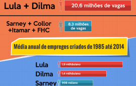 Para ter uma ideia do que esse número significa, Dilma só perde para Lula no número de vagas criadas. Em oito anos, o ex-presidente chegou à impressionante marca de 15,3 milhões de vagas de acordo com a Relação Anual de Informações Sociais (RAIS) e lidera o ranking dos últimos 34 anos. Em segundo lugar, está Dilma, que em menos de 4 anos criou 5,2 milhões de vagas.