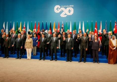 Presidenta Dilma Rousseff e demais Chefes de Estado e/ou Governo posam para fotografia oficial da cúpula do G20. (Brisbane – Austrália).