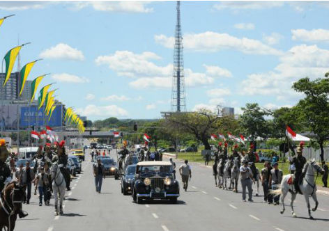 De acordo com Assunção, a presidenta passa para o Rolls Royce, no qual também estará o vice-presidente Michel Temer. “Aqui, além da escolta dos motociclistas, haverá uma escolta hipomóvel (a cavalo) até o Congresso Nacional”, explicou Assunção.