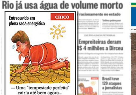 Quando o assunto é confundir a população sobre a reponsabilidade que cada instância de poder possui, manipulando a opinião pública sobre o governo, a grande mídia tem um largo histórico de “contribuições”. Em mais uma demonstração de descompromisso com a verdade, o jornal O Globo estampou uma charge de autoria de Chico Caruso, com a imagem de Dilma posicionada de quatro em um reservatório seco, retirando a responsabilidade da crise dos estados e municípios.