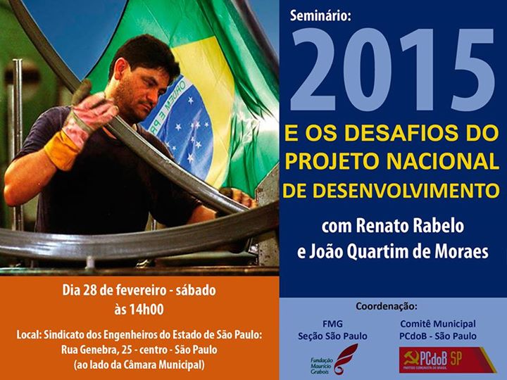 Venha debater os desafios de 2015 e do projeto nacional de desenvolvimento conosco e com o professor da Unicamp João Quartim de Moraes. A atividade é aberta para os amigos, militantes e filiados do Partido Comunista do Brasil.