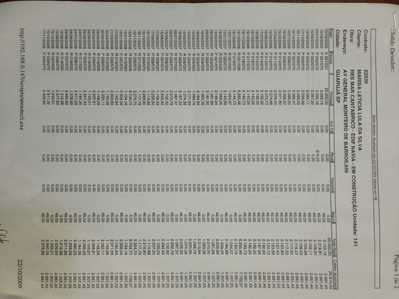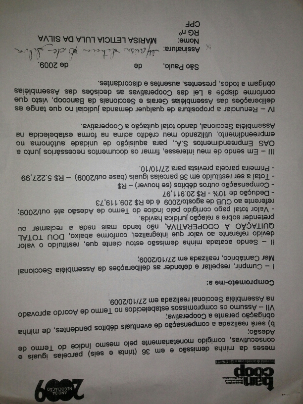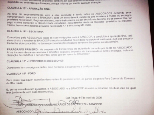 Marisa Letícia Lula da Silva assina o “Termo de Adesão e Compromisso de Participação” com a Bancoop – Habitacional dos Bancários de São Paulo.
