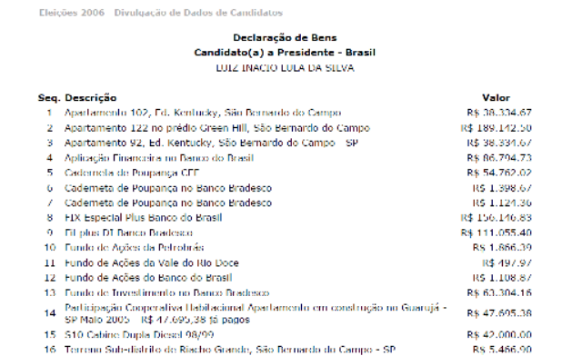 Site do TSE: http://www.tse.jus.br/sadEleicao2006DivCand/listaBens.jsp?sg_ue=BR&sq_cand=23