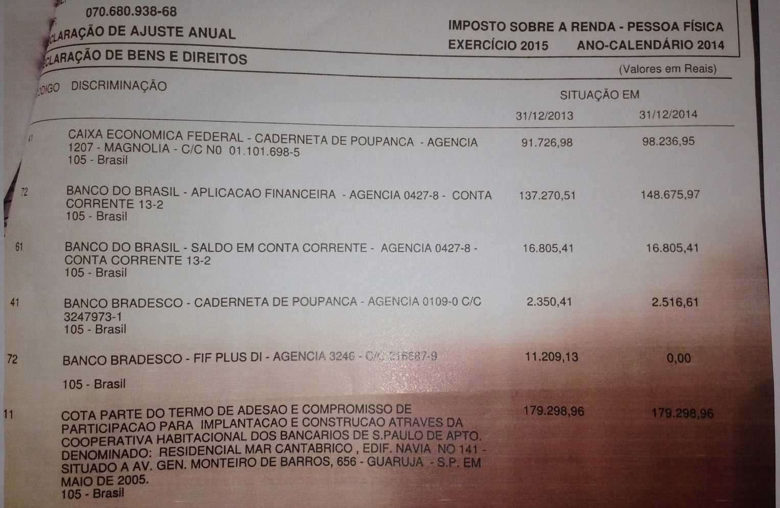 Na condição de cônjuge em comunhão de bens, o ex-presidente Luiz Inácio Lula da Silva declarou ao Imposto de Renda regularmente a cota-parte do empreendimento adquirida por sua esposa Marisa Letícia, de acordo com os valores de pagamento acumulados a cada ano.
