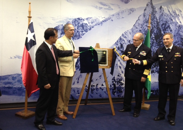 O descerramento da placa ocorreu em Punta Arenas, Chile, no Instituto Antártico Chileno porque as condições meteorológicas não permitiram o deslocamento para o território antártico, expressando bem as dificuldades para a realização do programa.