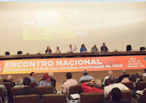 A luta contra o golpismo e o combate ao capitalismo, com a aplicação do Projeto Nacional do Desenvolvimento, foram os temas dos discursos das principais lideranças comunistas na abertura do Encontro Nacional – Fortalecer o PCdoB nas Eleições Municipais de 2016, na tarde desta sexta-feira (11), em Brasília. A presidenta nacional do Partido, Luciana Santos, foi quem fez a abertura do evento, que reuniu, no auditório Petrônio Portela, do Senado, militantes e lideranças da legenda de todo o país.