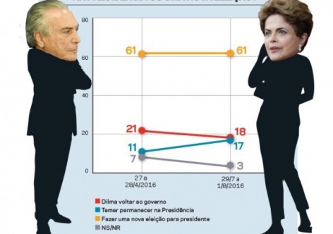 O índice de 61% é o mesmo verificado pelo instituto em abril, logo após a Câmara aceitar o pedido de impeachment da presidenta eleita Dilma Rousseff.
