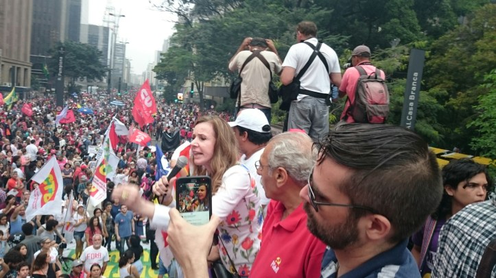 Logo após o ato político, o protesto o seguiu na Avenida Paulista sentido a Avenida Brigadeiro Luis Antonio. Em frente à Fiesp, manifestantes gritavam ” Golpistas, golpistas”, lembrando do apoio estratégico da federação no processo de impeachment.