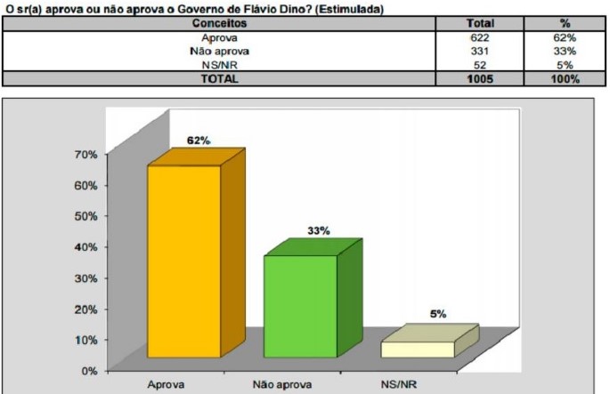 A nova pesquisa confirma a força popular do governador. Passados 2 anos de governo, Flávio Dino consegue escapar do desgaste geral da política e ostenta um patamar bastante elevado de aprovação.