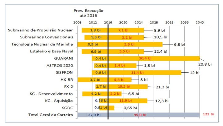 Cabe resgatar que nos governo Lula e Dilma ocorre uma importante elevação dos investimentos para aquisições de Defesa, com o início efetivo de grandes projetos estratégicos das Forças Armadas. Estes investimentos são consequências da Política e da Estratégia Nacional de Defesa de 2008, orientações de Estado, a partir das quais o país realiza uma inflexão importante, iniciando estes grandes projetos, a partir da ideia-força de equiparar a estatura de Defesa à estatura geopolítica do Brasil, então em franca ascensão.