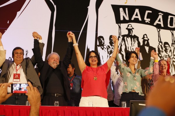 O ex-presidente Luiz Inácio Lula da Silva participou da plenária final do 14º Congresso do PCdoB, realizada neste domingo (19), em Brasília, e reafirmou o compromisso de unidade e a necessidade da construção de um projeto nacional para dar resposta à crise. O ex-presidente desmontou a tese divisionista e manifestou a sua satisfação com a pré-candidatura de Manuela D’Àvila à presidente da República pelo PCdoB.