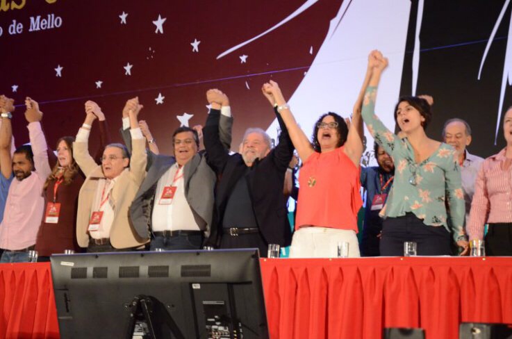 Durante a plenária final do 14º Congresso do PCdoB, no domingo (19), em Brasília, Lula desmontou a tese divisionista e manifestou a sua satisfação com a pré-candidatura de Manuela D’Àvila à presidente da República pelo PCdoB. “Qualquer partido de esquerda que quiser lançar candidato, que lance. Agora, se tiverem coragem a gente vai pra rua junto”, enfatizou Lula, reforçando que a candidatura de Manuela, como a de qualquer outro candidato é legítima. “A única coisa que vocês poderão estranhar daqui pra frente, é um belo dia eu começar a ir nos comícios da Manuela”, brincou. Na mesma plenária, a presidenta do PCdoB, Luciana Santos, enfatizou o esforço do PCdoB em lutar pela garantia da candidatura de Lula, como também Manuela destacou os aspectos comuns entre PT e PCdoB na defesa do Brasil e do povo brasileiro.